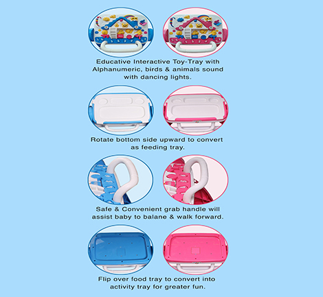 - Convenient Push handle for baby, which allows easy and firm grip to push, support & walk. With these features, your little one will gleefully start taking his/her first steps safely and securely